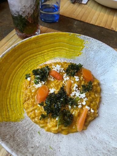 The meal itself was a journey of unexpected flavors. We began with the humus, moved to a Peruvian-inspired potato dish, and rounded off with a richly textured risotto. Each dish was an exploration of unique, contrasting flavors that harmonized beautifully. The waiter’s mention of the chef’s "twinkle in his eyes" was not just poetic but accurate; the passion in the kitchen was evident in every bite. We could taste the love, the thoughtfulness, and the precision behind each plate.