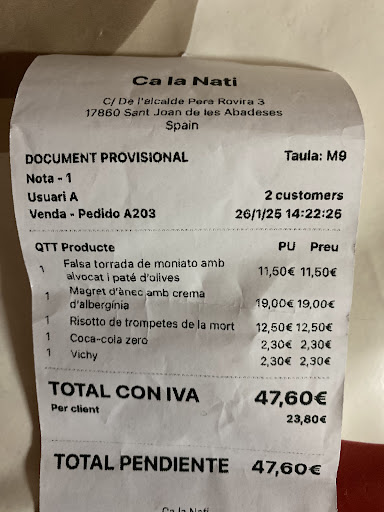 Read moreHem anat a dinar després de llegir els comentaris i realment, hem dinat molt be, hem tastat per compartir una “torrada de boniato amb olivada i alvocat” un “experiment” molt bo, un magret d’ànec en el seu punt i un rissotto de trompetes per repetir. Si mengeu normal, amb un plat per compartir i un segon, podeu fer la mar de be. El servei, jove, però molt correcte. L’única pega és si trobes una taula sorollosa, com ha estat el cas. És un lloc per anar-hi i tastar...