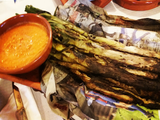 Després d'agafar del que queda, comencen a portar-nos els plats. Molt ràpid, en porten la meitat. I després, durant 10 minuts més, no porten cap dels que faltaven. Ve un cambrer diferent a preguntar-nos què havíem demanat, i ho repetim. Llavors ve una cambrera amb un gaspatxo, però ningú havia demanat gazpatxo. 5 min després ve el segon home, amb els plats, vessant el plat d'esqueixada. I 15 min després d'haver-la rebut, començo a menjar la meva fideuà, complement freda.