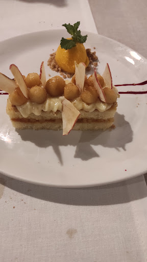 Pedimos el carpaccio de sirvia, la ensalada templada de langostinos y pollo payés, los espárragos blancos crocantes sobre cremoso de coliflor e Idiazabal y tacos de flor de salmón, y de segundo los raviolis rellenos de morcilla dulce con salsa de boletus edulis y el rodaballo asado sobre una crema de zanahorias y cÃtricos caramelizada al aroma de trufa blanca; y de postre un crumble de manzana para el que no tengo palabras, creo que esto fue lo peor. El carpaccio, la ensalada y los raviolis estuvieron bien, pero el plato de los espárragos crocantes con coliflor, Idiazabal y la flor de salmón, no tenÃa sentido ninguno, era como tirar todos los ingredientes en el plato sin conexión alguna. El rodaballo, sinceramente, nada del otro mundo con una salsa que no aportaba nada, todo ello teniendo en cuenta un precio superior a 30€ por ese plato... Y para rematar, el crumble de manzana, que consistió en trocear manzana cuasi cruda, y servirla con una especie de bizcocho insÃpido sin acompañarlo ningún tipo de crujiente.