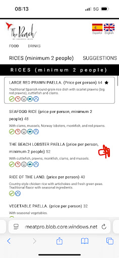 My girlfriend and I stopped for a quick lunch before heading to the airport and ordered a lobster paella listed on the menu for about €50–60 per person. I even pointed directly at the paella on the menu to the first waiter, clearly showing that this was what we wanted. Instead, he wrote down a “national lobster” from a completely different page of the menu. The waiter, who spoke very poor English, later brought a live lobster to the table. Since this was our first time ever eating lobster, we thought this was simply part of the paella we had chosen.