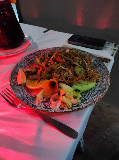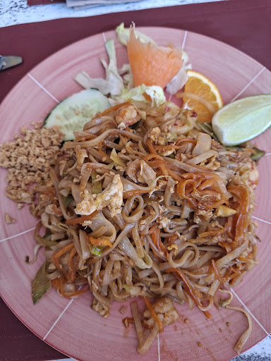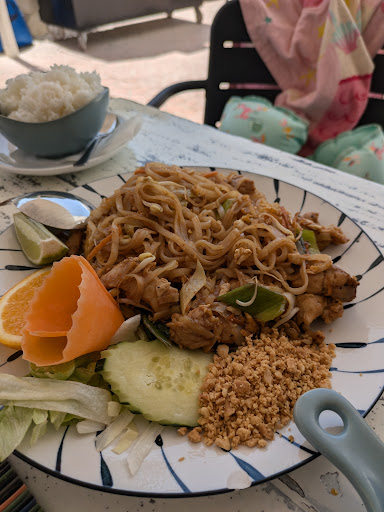 Read moreChioschetto di Thai food all'interno degli Apartamentos Cala Vadella. Il menù è composto da pochi piatti disponibili in diverse opzioni (con pollo, manzo o gamberi, una di noi è vegetariana e senza problemi hanno fatto un pad thai solo di verdure ) questo permette un servizio veloce con sapori autentici e impiattamento davvero da casa thailandese. Le porzioni sono abbondanti e nei vari piatti c'era una piccola insalata di contorno. Per quanto non specificato sul menù credo che i noodles fossero di riso. A giudicare dal cartello dovrebbe essere principalmente un ristorante da asporto, ma è possibile anche mangiare in loco, i tavoli sono accanto alla piscina ed il personale di sala come il menù dei drink lo stesso del ristorante dell'hotel, così abbiamo potuto prendere...