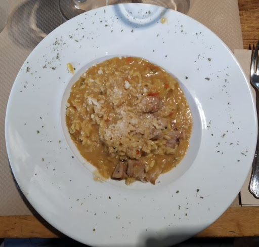 Read moreMe encontraba de paso en la localidad y en mi búsqueda de lugares recomendados para comer terminé aquí. Con mi experiencia he entendido que su fama está más que justificada. El lugar es céntrico, amplio, bien iluminado y su decoración es agradable y coherente. El estado del baño es pulcro, ordenado y habilitado para personas con movilidad reducida. El personal mostró interés por satisfacer. La comida, que seguramente sea lo esencial, merece mención aparte: los rigatoni con bechamel del primer plato han sido de los más deliciosos platos de este tipo que recuerdo haber comido jamás, del segundo sobresalientes el bistec ruso como las patatas del acompañamiento y el helado del postre ya a esas alturas me ha parecido que podía morirme con el estómago satisfecho. No sé cuando voy a volver por este pueblo pero difícilmente me olvide de esta experiencia si lo hago para reencontrarme con tan...