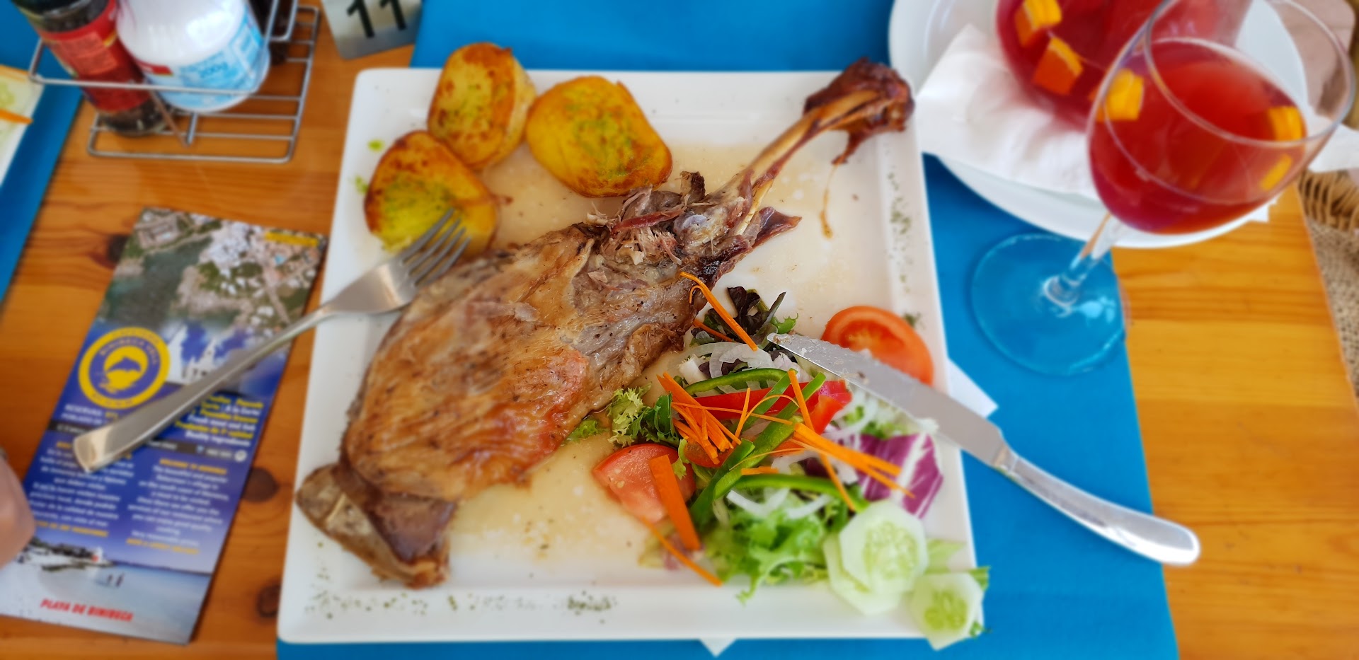 The first time we visited here was for a takeout paella, had a free bottle of wine from Andres to go with it, returned the paella pan next morning....wow what an amazing Paella it was.......a couple of nights later we went in for a set meal of delicious prawns, Menorcan mussels and a steak meal with a bottle of fizz.....didn’t have room for dessert but enjoyed the limoncello with the bill....Met Andres and his lovely dad and found my husband and them had a common love of history and metal detecting and swapped numbers to keep in touch, such lovely friendly people who serve up amazing food! Visiting is a Must!....we will definitely be returning in years to come. Lou , Andy, Kitty & her...