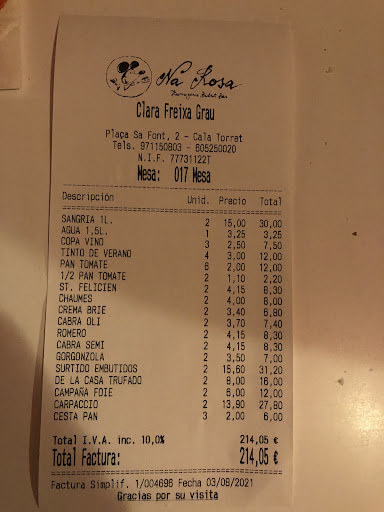 Mesa de 7 personas con reserva hecha por la mañana. Llegamos a las 22h. Nos toman nota de la bebida y a partir de ahí esperamos algo más de 1h para la comida. Recordemos que TODO lo que pedimos son cosas frías, que no requieren gran cocinado. No hubiera sido mucho problema si al menos al llegar nos hubieran avisado. Cuándo tras 1h va uno de nosotros a preguntar al camarero de pelo rizado(porque hasta entonces no nos miraba ninguno) y a decirle que llevábamos 1h esperando le dice literalmente “Vamos a tope…si quieres te lo explico” (léase cómo pregunta retórica, tono chulesco; no de amabilidad). Nos traen la comida (toda de golpe) y obviamente no cabía todo en la mesa por lo que tuvimos que comer bastante rápido para ir liberando espacio. Si tienes mesa con 7 personas, si traes 7 yescas de pan pequeñas, obviamente no va a llegar….y pedimos una remesa de pan y nos preguntan cuántas yescas exactamente…. Sobre la bebida, no tengo foto, pero la copa de vino era literalmente una broma. Dedo y medio de copa. Soy bastante de vinos allí dónde voy…y esa copa era muy muy poco. Vale que son 2.5€ pero hombre….