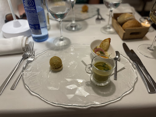 La comida fue muy buena pero el servicio… tampoco fue bueno por el precio del menu. Entre que nos trajeron la carta y nos sirvieron los aperitivos demoraron 25 minutos. Después, cuando terminamos el segundo plato, veíamos que los camareros estaban desarmando mesas a nuestro alrededor pero no venían a quitar nuestra vajilla y preguntarnos por el postre. La mesa de al lado también demoró 20 minutos en pagar el servicio porque nadie traía el datafono. Tambien, cuando les comentamos el malestar por la situación y porque había una zona del restaurante vacía y muy tranquila, la camarera nos dijo que los comensales maleducados “estaban pasando un buen momento”. A veces es mejor no decir nada si no es posible arreglar la situación.