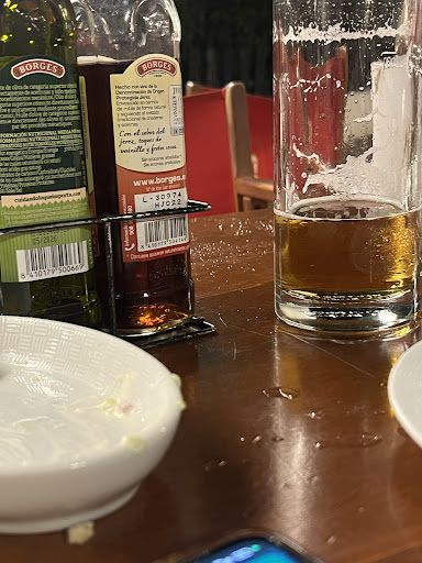 Read moreIt's the most obvious place in town being situated right on the street in a commanding position. Also, they've a lot of young staff carrying out drinks and food etc most of whom speak good English. But it does get busy because of where it is and its food quality can vary enormously dish to dish. I quite liked the street location, and if you like watching the world go by as you eat it's the place for you. Classy joint it isn't. However, if you see the size of the kitchen, it makes you wonder how on earth can they serve as many people as they do in an evening. On one visit, we spent a jolly afternoon watching Spain lose in the World Cup and given that the bulk of the customers were Spanish, you can imagine the event. We did eat there one evening - mixed fish platter and mixed croquettes - OK but nothing special. But their...