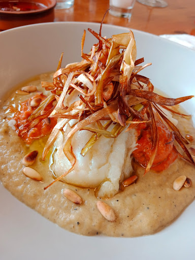 Una joya escondida!! Merece la pena desplazarse hasta allí para degustar los platos del chef. Primero , nos preparó una berenjena asada y terminada con una especie de empanado cubierto de láminas de parmesano y pinceladas de miel. ¡¡ Espectacular!! Segundo, un bacalao sobre crema de calçots, con toques de salsa calçots , laminas crujientes y piñones. Una explosión de sabor ,texturas y una combinación increíble. Terminamos con un chuletón, esquisto. Todo esto, acompañado de patatas fritas de verdad, no congeladas, pimientos asados a la brasa,con aceite de ajo . Hacía mucho,mucho tiempo que no disfrutaba tanto de una buena comida en la que se combina,no solo la calidad ,si no ,la elaboración,la textura,los sabores, el producto.... Muy recomendable. Olvidaba mencionar la tarta de queso....de las mejores que he probado. Estaba recién hecha y nos la sirvió...