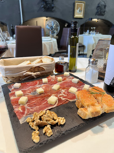 Espacio: antigua bodega restaurada y decorada con mucho gusto y cariño. El comedor está situado donde se trabajaba el vino y está rodeado de un museo con herramientas, utensilios e información sobre el trabajo y tratamiento de la uva y el vino. Experiencia muy agradable para los amantes del vino y del proceso de producción.