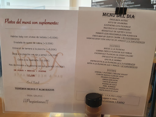 Read moreEstafado. Menú diario a 15 euros. Sin suplementos podías pedir por ese precio, por ejemplo, unos fingers de muzzarela de primero y de segundo una fideuá con alioli, postre y bebida incluidos. Éramos tres, pedimos carta normal y nos dicen no hay, que los platos combinados son los que están en la pared junto a la lista de bocadillos. No tienen precios. Para no gastarnos 45 euros pedimos dos platos combinados, patatas fritas con huevo frito, uno con pechuga empanada y otro con bacon, una Fanta naranja, agua de litro y medio y una CUÑA o pinchito de tortilla, postre un helado y un café. Cada plato combinado 13 euros, (menú completo 15) y el pinchito o cuña de tortilla de patatas, 12,50!!!! Suplemento de refresco 0,60 (hielo) que no pedí y el café, 1,60. Se merecen una estrella pero le coloco 2 porque fui el culpable de no exigir la carta de precios que me negaron. El lugar a petar de currantes, queda en un polígono y me sentí como ese cateto que pincha la rueda y te cobran 100 pavos por el pinchazo y...
