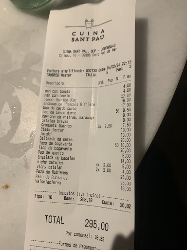 The Sant Pau is one of these elite restaurants with 3* Michelin rating. My family and I visited the Sant Pau over Christmas and the experience was mind blowing. The restaurant is located in the sea front in Sant Pol de mar, the first village of Costa Brava (one can also say: the closer to Barcelona). From the beach entrance you can see the amazing kitchen where the magic happens and the fantastic terrace where in summer you can enjoy an apero or a drink after lunch. We ordered the menu set and it definitely was worth it. I could not tell which was the dish that impressed me the most as they were all amazing. The chestnut and truffle soup was just exquisit and the deer loin just melted as soon as it left the spoon. I remember I was not really impressed by the chocolate desert, but you know... they give you 3 deserts so just enjoy the other 2. It is not that it was bad, it just did not surprise me. The somalier was very knowledgable and actually a fun guy. He recommended me a great cava and a fantastic moscato for my mother. At the end of the dinner and as it is usual in this kind of restaurants, the chef: Carme Ruscalleda, came to talk to us to make sure we were happy. She is a peculiar woman and I was very pleased to see her live. We asked her whether we could visit the kitchen and she made sure members of the stuff would guide us through it. Definitely a...