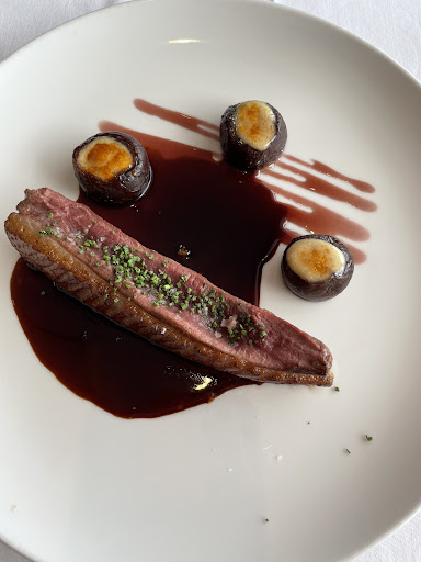 El pato, me pareció que nos quedó debiendo, en cuanto a sabor estaba bien logrado, el quenelle de patata cítrico no lo disfruté mucho, no porque estuviese malo, sino porque capaz soy tradicional y pienso que estaba mejor un parmetier más graso. La cocción del magret, nuevamente a mi gusto me pareció que le faltó un poco, yo lo hubiese llevado al punto, en lugar de punto menos como ha llegado, en cuanto a sabor estaba bien, pero en boca, lo peleabas un poco para que cediera.