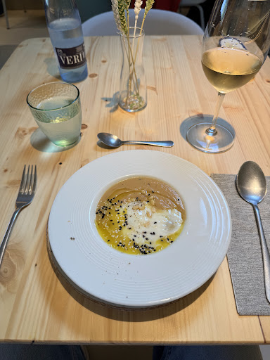 Destacaré la qualitat del producte amb el què treballen, així com l’excel·lent servei rebut, tant per part del propietari com dels cambrers. La relació qualitat-preu del menú és excel·lent. Les combinacions de sabors són autèntiques i he gaudit de cada plat. Destaco especialment la crema de ceba, la combinació de la maionesa trufada amb l’ensaladilla russa, un plat espectacular, la tendresa i el sabor de l’entranya acompanyada amb la parmentier de patata i ceba, i el brutal pastís de formatge Shropshire. Un lloc molt recomanable per venir-hi. A més, disposen de pa i cervesa sense...