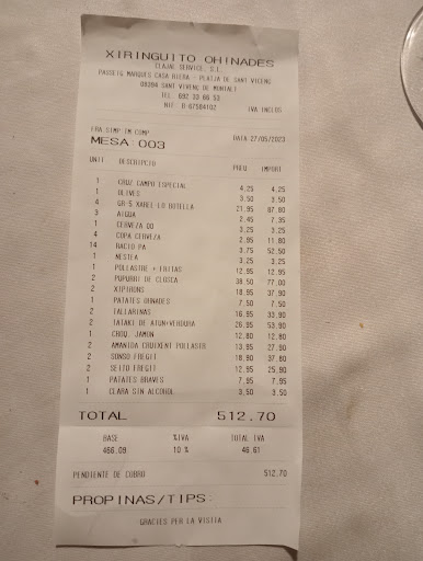Read moreThis is undoubtedly one of the best chiringuitos that I have visited this summer. The raw ingredients (fish/shellfish) have been on par with some of the best restaurants that I have been to in Barcelona and the service was spot on. I very rarely give a restaurant 10 out of 10, never-lone a chiringuito and almost never take time to add a review, but this place deserves it. Going tomorrow for what could be my last visit of the year and looking...