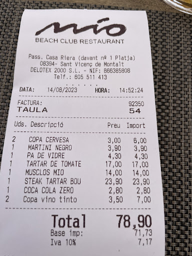 En mi caso fueron 110 € que podía haber sido algo más si habéis atendido a nuestras peticiones de bebida.