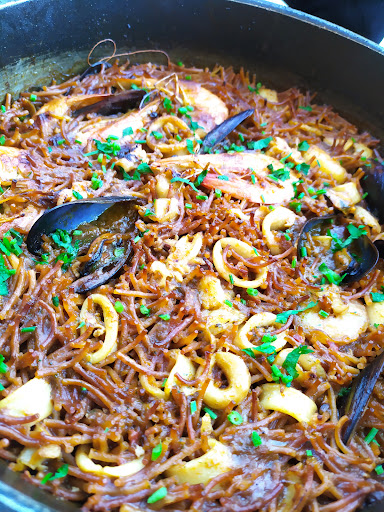 Le tenía ganas a este restaurante, mas de una vez he querido ir pero siempre me topaba con el inconveniente que estaba lleno. Ésto se ha arreglado hoy, y la experiencia ha sido totalmente satisfactoria. Empezamos diciendo que aparcar ha sido toda una aventura pero a partir de aquí todo lo demás es bueno. Una terraza apañada pero algo justa para unas 6 mesas que quedan algo juntas y si como nosotros que no somos fumadores, se sientan personas que si lo hacen quizás pueda molestar un poco. La atención cercana, simpático el camarero que nos ha atendido hoy domingo.... servicio rápido y eficiente. Hemos pedido para comenzar unos Tequeños, muy ricos por cierto...acompañados con una salsa y están ricos tanto con como sin ella. Para continuar una fideuá realmente rica, bien aderezada con festival de sabores y mucho ingrediente que le otorgaba tanto una excelente visión como sabor. A la foto que pongo solo le añadiría que el olor era estupendo. Para finalizar en festival dominical que mejor con dos postres excelentes...para muestra las fotos. Valoración excelente y buena opción para darse un buen homenaje. Sin duda volveré para degustar más platos de la carta....!! Gracias por ese servicio. Un detalle que a la hora de pagar me han cobrado lo de otra mesa.... Pero ha quedado ahí y porque le he avisado...... Total la cuenta con dos copas de cerveza el entrante la fideuá los dos postres y dos...