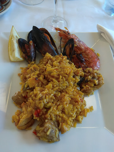 En los calientes, destacar una paella de arroz caldoso con bogavante, estaba muy buena, pero un solo bogavante por paella de 20 raciones, igual es poquito.