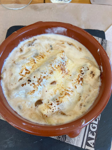 Read moreEspai molt encantador. Per la presa no vàrem poder estar molt, però un lloc molt tranquil i bonic. Vàrem tastar un plat de temporada de bolets que estava boníssim. Les braves no destacaven, normals. Ens van posar una guarnició de embotits, jo que no menjo aquella carn recomeneria alguna opció vegetariana, però ho agraeixo molt. Vaig anar expressament per els canelons de bolets i no hi havien.. però tenen varietats que són molt bones (el Caneló de la imatge es el que tenen de fua i no recordo que mes duia). La decoració es podria explotar encara més. El preu es podria ajustar més, però no es exagerat. El servei molt bé, molt familiar, però això desencadena que vàrem ser atesos més tard. És un lloc que tornaria i...