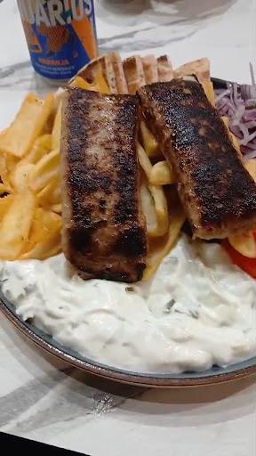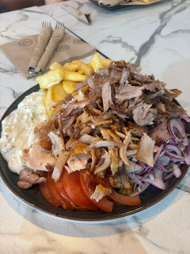 PROS: La comida esta buena, es muy similar a un Kebab de calidad (como lo era el Spanish Kebab en sus origenes) pues su carne es natural lo cual es un factor diferencial si lo comparamos a la 'mortadela' de casquería que suelen poner en la mayoría de los Kebab baratos. La diferencia es que este es un griego y tiene algunas diferencias como que la carne de ternera aquí es de cerdo, no tienen salsa roja y la salsa blanca se nota predominancia de yogur griego por lo que es mas espesa y su sabor tiene un toque mas agrio y no tanto a ajo como la del Kebab. Pero esta muy rico. CONTRAS: los platos son muy grandes (casi para dos personas) y por ende mas caros, no habiendo termino medio para elegir. Algunas de las patatas fritas me vinieron sin terminar de hacer y aceitosas y esto empeora el producto final cuya base es buena. En los durum la salsa a veces es escasa o mal distribuida y el plato puede perder su gracia, por lo que miré si vendían salsa a parte para la próxima vez y no se si es un error pero si pides la salsa suelta vale la friolera de 6.5€, lo cual es una LOCURA cerca del abuso, si no es un error no entiendo quien narices toma este tipo de decisiones en un negocio la verdad.