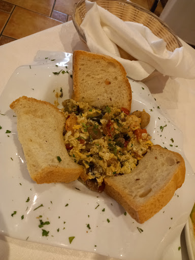 Nos han puesto alioli con tomate pero sin pan. Al pedirlo hemos esperado unos 25 minutos por el pan. Los mejillones y calamares si han salido a tiempo. El arroz nos lo hemos comido 1 hora y 50 minutos después de pedirlo. El entrecot no estaba muy hecho y lo han tenido que volver a pasar. Han puesto salsa de pimienta en vez de setas. Lo hemos reclamado y al rato ha llegado.