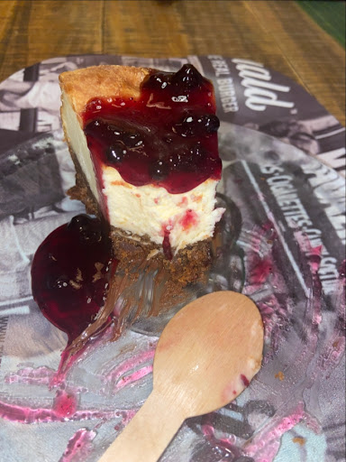Del postres, no tengo palabras. De las mejores cheescakes que he probando 😋 y me considero muy buena catadora. La base de galleta lotus le daba un toque increíble, ya que se notaba su galleta tostada y riquísima. El relleno de la tarta estaba increíblemente suave cremoso con un sabor INCREÍBLE y bueno, la mermelada de arándanos sencillamente BRUTAL. Se nota al 100% que la tarta es ELABORACION SUYA PROPIA, esta de escándalo.