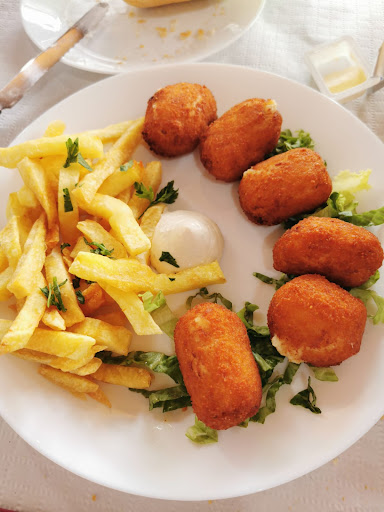 El plato principal fue un bistec de cochino negro asado con papas fritas caseras. Tierno, jugoso y perfectamente cocinado. Con una sola ración comimos tres personas, ¡y aún sobró!
