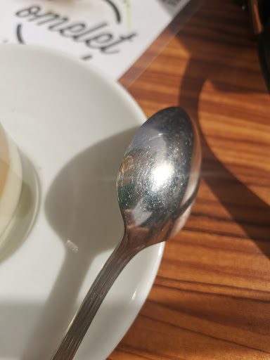 Fui a tomar café esta misma mañana, pedí un Barraquito. La chica Rubia que me atendió me lo trajo y yo, que me dedico a esto. Tengo la manía de revisar las cucharillas. La primera que me trajo estaba sucia. Me levante y amablemente pedi otra. La misma chica me trajo una con un plato, servilleta y todo. Pero igualmente sucia(FOTO). Pregunto yo, no es lógico que si el cliente se queja de algo así, antes de llevarle otra, la revisemos? Pues se ve que no. Luego vino mi acompañante y pidió café, su cuchara estaba sucia. Un descaro. No se si son conscientes de que algunas personas se ponen la cuchara en boca. Creo que se sabe que el Lavavajillas no hace milagros y que cosas así hay que pasarles un poco de agua con la mano. Que el agua no muerde. Si no tienen ese cuidado de higiene con algo tan simple y a la vista diariamente ... Por...