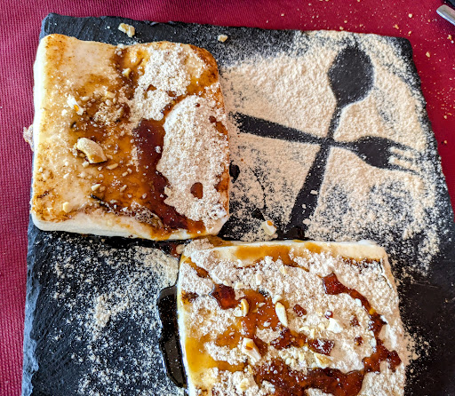 Read moreEste restaurante bar tiene dos zonas bien definidas, una es la terraza exterior, al otro lado de la carretera, y con maravillosas vistas del Valle de La Orotava, ideal para tomar un café, cerveza o degustar un postre, en esta ocasión, fue una tarta de mango. La otra zona, es el restaurante en el interior. Decorado con estilo, haciendo referencia al nombre, con láminas de cuadros de surrealismo pop, acogedor, tranquilo y agradable. De los entrantes de la carta, destacar el queso asado con gofio y miel de palma, así como los huevos rotos con papas sabrosas. De segundos, buenos calamares y tiras de merluza y un completo asado, con el pollo jugoso, morcilla, salchichas y chuletas en su punto. La amabilidad y simpatía del servicio completaron una...