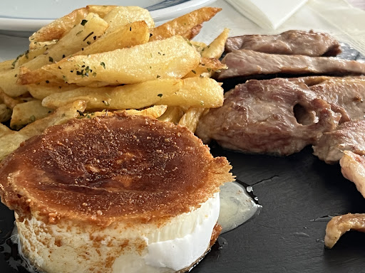 Read moreNo admiten pago con tarjeta. Queríamos reservar a las 14.30, el hombre que nos atendió dijo que había dos turnos, a las 14 y luego sobre las 14.15/30. Llegamos a las 14 y sólo había una mesa ocupada, a las 14.30 llegaron varias reservas (¿por qué a nosotros no nos dejaron?). El revuelto de ajetes lo devolvimos a la cocina, los ajetes estaban quemados, como se puede ver en la foto. La carne rica, aunque las primeras piezas se pegan a la piedra y el camarero no nos avisó, le tuvimos que pedir aceite de oliva. El precio, sin el revuelto incluido, 75€ (un entrante, solomillo a la piedra, vino y un postre), nos resultó caro para la calidad...