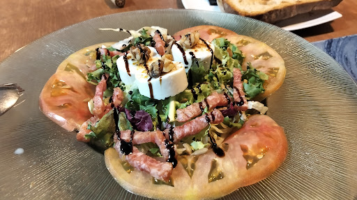 Read moreHacía tiempo que queríamos venir a La Sala de Farners a comprobar si era cierto los comentarios tan buenos que tiene este restaurante, y por fin hoy nos decidimos. La Sala es un local dedicado a la brasa, y efectivamente, quedamos encantados, desde el minuto uno en que nos atendió Adam. Su simpatía ya hace que te sientas cómodo y con ganas de comer. Antes de empezar nos obsequiaron con un vasito de gazpacho con picatostes, cortesía de la casa mientras esperamos el primer plato. Teniendo en cuenta que a mi el gazpacho no me suele gustar por el pepino, éste vasito sí que me gustó ya que el pepino no estaba muy remarcado. El primer plato era una ensalada para compartir de queso de cabra, aparentemente sencilla, pero muy rica, a destacar el tomate cortado en finas lonchas, el queso y el toque de bacon, que queda genial. De segundo, mi mujer probó el magret de pato a la brasa, cortado en rodajas y hecho en su punto, con ese toque ahumado que lo hacía tan rico. Yo probé una pata de pulpo a la brasa con parmentier que estaba espectacular, qué cosa más buena! Todo aquello acompañado con un buen albariño y unas buenas tostadas. Para rematar, nos comimos dos xuxos, uno de crema y el otro de chocolate, a cuál más rico! Eran xuxos grandes también presentados a cortados a rodajitas y acompañado de dos chupitos de ratafía. No es un sitio barato, pero que pagas a gusto porque lo vale, después de lo bien que comimos y la atención que tuvimos. Por último, destaco también que el local es un sitio muy agradable, confortable, sin ruido de gente, y con una decoración vintage que nos gustó mucho. Está claro que...