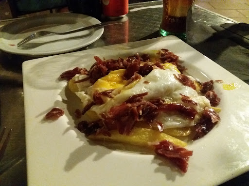 Nuestra experiencia de hoy, sinceramente no ha sido muy positiva. Cuando lo mejor de la cena ha sido el vino (Clos de nit) no dice mucho de la comida. El servicio ha sido rápido, pero no demasiado atento, un par de servilletas amontonadas con los cubiertos y ni un solo plato para la comida. Los huevos estrellados con virutas de jamón, han sido normales, jamón de segunda categoría, con huevos más bien cocidos en aceite que no fritos, y unas patatas fritas, pues eso fritas. Luego hemos pedido una pluma ibérica a la brasa, dudo que no estuviera congelada, estaba más que hecha, seca, y sin ningún tipo de salsa. No digo que estuviera mala la comida, ni mucho menos, pero calidad/precio hemos quedado...