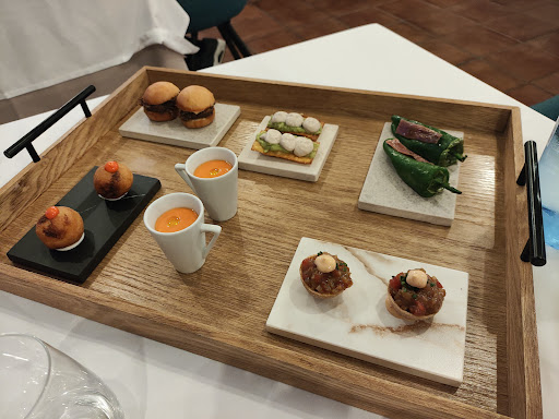 Read moreEstuvo bien, pero no para 5 estrellas, si pudiera, pondría 4.5. Nos atendieron bien, pero nada en particular a destacar, sinceramente. Fue una atención amable y cordial, pero no destaca. El lugar es un comedor con vistas al jardín de un hotel. Respecto a la comida nos pareció cara relación calidad-precio. De cortesía nos trajeron una mantequilla de anchoa. Por lo que oí en las mesas colindantes tenía mucho sabor, pero no la llegué a probar porque no me gusta ese tipo de pescado. De entrantes pedimos media de croquetas de jamón, media de rabas de calamar fresco y media de buñuelos de bacalao. Las croquetas tienen una bechamel muy cremosa, muy bien conseguida, sin embargo el recubrimiento de pan rallado les daba un sabor para mi gusto de congeladas. Obviamente no lo son, pero se sentía un regusto a ese sabor. Los buñuelos de bacalao estaban exquisitos, pero pecaban de muy salados. Creo que el bacalao habría que haberlo desalado más. Las rabas muy buenas, caras a comparación de lugares de la zona donde también son frescas y de esa calidad. He de indicar que cobran un 10% extra a las medias raciones que fue nuestro caso. De platos principales unos canelones de carne guisada (creo recordar que eran carrilleras). Buenos, pero algo que podrías comer perfectamente en tu casa. No me parecieron espectaculares. Por otro lado, pedimos lomo de vaca. Para mi gusto, le faltaba sabor y potencia a la carne. De postre tiramisú, que estaba bueno, pero me reitero, muy normalito. Comento esto porque el restaurante tiene un 4.8 y creo que es elevado para la calidad/precio que se ofrecen en otros...
