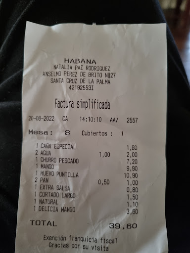 Read moreDos adultos y un niño y pedimos churros de pescado que venían acompañados de papas (en la carta estaba en el apartado de infantil, pero era un plato generoso y a mi hijo le encantó), una ensalada de mango con judías blanca y hortalizas que parecían frescas, y unos huevos revueltos con puntillas de calamar, todo con dos panes y alioli. De postre, dos cafés cortados y una especie de yogur con mermelada de mango y bizcocho. Bebimos una caña y dos aguas pequeñas.Todo muy rico y con papas fritas de verdad, no de las congeladas de bolsa. El café... De los buenos buenos. Nos atendieron muy rápido y nos sirvieron las bebidas y la comida también muy rápido, y eso con todas las mesas ocupadas. La atención de los camareros una maravilla. Por lo que vimos en carta, sirven desayunos y, a juzgar por los ingredientes, lo que comimos y el café, deben estar muy bien. La pena es que nos lo encontramos tarde y lo desayunar allí habrá que dejarlo para otra...