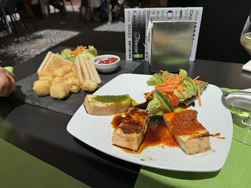 Read moreLooks good from the outside and the menu reads fairly well (for La Palma, which is, it would appear something of a gastronomic wasteland by and large). The wine was, to be fair excellent but the food was pretty shoddy. I had the mussels to start, some of the largest I've ever seen I have to say but grilled too much so were a little dry. My wife had the grilled cheese with mojo which was ok, but we'd had equally good at half the price in tapas bars nearby. Moving on to the mains I wanted the rabbit (a local speciality with almonds etc apparently), but this was sold out so I went for the lamb. The sauce with this was so sweet it was ridiculous, and the chips were over salted. My wife had the duck which again was way too sweet. Both of these are fatty meats so need something acidic to compliment them, basic cheffing 101!! Service was pretty slow as well (though to be fair the whole island lives at a slower pace). One of the priciest meals we had whilst on the island and definitely...