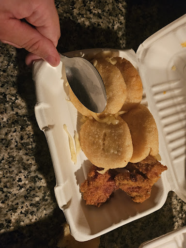 Read moreBueno, las arepas las estuvimos esperando más de media hora, pero eso no fue el problema, el problema fue la actitud y la cara de la chica que me atendió ayer por la noche, a pesar de que yo haya sido muy amable y haberle recalcado no había prisa, que no se preocupe por qué me esté haciendo esperar, la mala cara y la mala actitud de ella continuaron. Pedimos 4 reinas pepiadas, dos de ellas con papas. Cuando le pregunté cuántas salsas de aguacate me daba, me dijo que 3, a lo que contesté, pero son 4 arepas, y responde, es una salsa cada dos arepas y una salsa por cada arepa con papas. ( espero que sea verdad). Pagué 0.50€ una salsita extra. La gota que rebalsó el vaso fue que comimos en el coche en otro sitio y no nos dejaron...