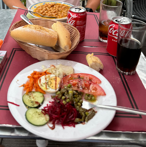 .La ensalada árabe daba vergüenza verla aunque el pelo le dió su toque,y los garbanzos, a parte de duros, insípidos. Para continuar con el segundo, la carne en salsa estaba en mal estado, daba mal olor por lo que se lo comunicamos al camarero, el cual mostró indiferencia. El tiramisú fue lo único que se salvó, de resto nefasto.