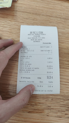 Read moreLa verdad que fui hoy por este local porque me lo habían recomendado, me da por entrar en el local para preguntar por una mesa y lo primero que me contesta el dueño es que tenía que haber llamado?? donde y en qué bar de San Andrés hay que llamar para reservar, el que lo olle que tiene un restaurante , en fin para no liarla tanto me miró con una cara , se que es un festivo y va a aber trabajo, para eso hay que organizarse , no el desastre que tenía en esa barra, lo siento pero tengo que ser justo, yo siendo un dueño de un bar no dejo ir un cliente sin ser atendido, por querer cerrar a las cuatro, me lo recomendaron pero no lo pisaré más, solo con la actitud del personal, no lo recomiendo, me fui a la estrella que está más abajo de este local y me atendieron de maravilla, aún teniendo más clientes que este señor, no...