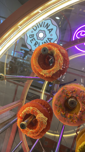 Read moreMis donas favoritas de Tenerife :) Las rellenas están brutales y qué decir de la pachanga!! Son veganas pero el sabor es similar o incluso mejor que las que no lo son. Me gusta que no sean industriales. Vale mucho la pena probarlas. El trato en Divina Berlina es exquisito, gente súper amable, siempre con una sonrisa. Genial tanto para tomarte una dona con un cafecito en el propio local como para llevarte una cajita a casa. Nosotros hemos comprado cajitas para regalos. Me gusta esta opción porque a veces no se sabe si a quien le regalas puede ser vegano/vegetariano, con esto aciertas seguro. También hemos encargado cajitas para mandar a amigos. No ha hecho falta ir a recogerlas, mandan a domicilio. En definitiva, un comercio genial de...