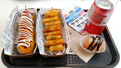 Read moreLo probamos después de tanto tiempo que lo habíamos visto y tal y como nos dijo el chico que nos atendio...con el primer bocado, nos llevamos una sorpresa. Estaba muy muy bueno!!! La masa es espectacular! Es algo que me comería sin ningun ingrediente más y está bueno igualmente. Pedimos dos hot dogs koreanos, uno de mitad queso/mitad pollo y el otro de cerdo/queso. Con salsas de alioli-teriyaki y chili dulce y salsa de queso. Aunque luego empezamos a juntar todas y nuestra mezcla ganadora fue alioli y chili 😅😍 buenísimo!!! También pedimos las bolas dulces de kinder y otra de oreo. Nos quedamos con la de Kinder , una explosión en la boca tremenda. 🥵 Cómo para comerte varias, y lo mismo digo que el hot dog... Podría comerse la masa sola que sabe igualmente perfecta.