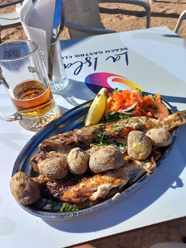 Read moreThis is a beach restaurant with a captive clientele. The prices are high, but food choices are surprising for a beach diner. We ordered the Paella for 24 Euros and it was 5/10 (very little seafood, mostly rice). The low rating is due to the bathroom situation. If you have travelled much in Spain you know to bring your own toilet paper wherever you go, so they get a pass on that. But a restaurant should have water. However, the bathroom lock doesn't work and someone has to either stand and hold the door shut, or you work with the key from the inside until the dead bolt works, only to trap yourself in the bathroom. My wife had to pound on the door to get the attention of the staff who then assisted in get the door opened. This is a inexpensive thing to repair and the fact that they leave it like this speaks volumes about the...