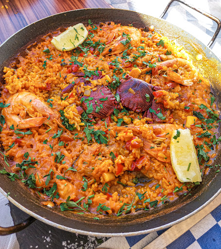 Food, it was okay. Very salty, didn't need the extra salt if you get the seafood paella. Crabs that were on it looked pretty but held no meat.