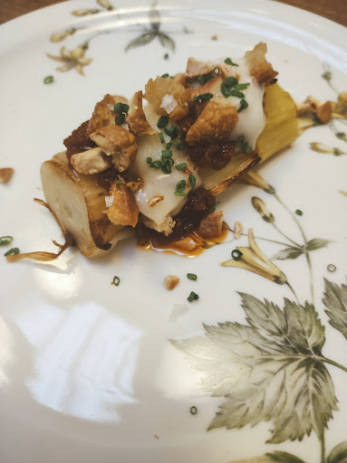Read moreHoy descubrimos un estilo de comida única, la elaboración totalmente complicada, se cuela por todos los sentidos, calidad del producto espectacular y el emplatado perfecto. Nos sorprendió gratamente la pequeña y concreta carta, muy bien elegida, 3 entrantes muy especiales destacando los garbanzos al foie " único" los quesos muy bien seleccionados ligeros y con un sabor concreto, luego 3 de verdura, 3 de pescado, 3 de carne, 3 de postre, tienes opcion de elegir, también ofrece un menú cerrado a buen precio. Nos decantamos por el pescado muy especial,y el pato muy personal, los postres son una delicia, flipamos de la elaboración de todos los platos, el servicio es muy amable pero instruido sabe lo que explica y sabe como llegar a la persona que va a disfrutar. La bebida está muy bien seleccionada y va acorde a los platos, y el ambiente es agradable minimalista y muy sencillo destacando la vajilla "vintage" acorde a la calidad de los platos, y la presentación de la mesa, el espacio es pequeño y acogedor, es un lugar para disfrutar de una gastronomía diferente: Muy exquisita, muy natural y sobre todo especial, lugar para volver, para apoyar a estos magníficos chefs que son creativos y te transporta a otro nivel degustativo es (sublime) No tengo palabras para decir la buena sensación que tuvimos como...