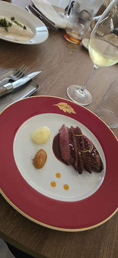 📋 La carta es breve pero muy acertada, con platos como el ajoblanco con lubina madurada y brevas; puerros confitados con queso Flor de Guía y tomate; láminas de picaña madurada con salsa café de París; rodaballo con salsa de mejillones y perejil; o pato con salsa de naranja y puré de orejones. Una cocina con memoria, técnica y oficio, que mira al recetario francés y vasco sin perder el alma canaria. El postre “Calabaza en la tierra” o su flan con chantilly de mascarpone son prueba de que aquí todo se cuida hasta el final.