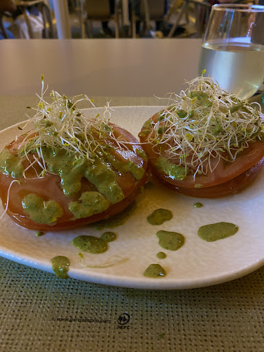 New Restaurant in the Toscal area of Santa Cruz which I though I would try! The do have a daily menu that seems pretty reasonable at 15euros but it didn’t take my fancy so I opted for a la carte .. Actually the menu is not large so it’s an easy read . I really felt in the mood for something original which they do have but it includes meat which I really don’t do.. In the end though I went for something pretty unoriginal except that their hummus is with beetroot and tasty ! The pudding a coconut cheese cake style is more flanish and luckily not too sweet ! The discovery though was a rather fruity wine not that was not sweet from the lacasmi cooperative , really decent ! The service excellent by a very attentive waitress . I think the owner or manager also serves but she didn’t approach my table so not sure . Price reasonable and the decor very neat modern and you can...