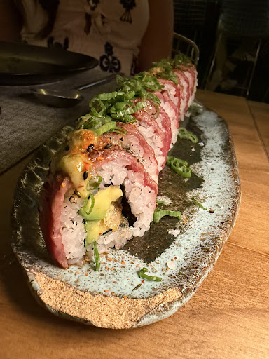 Uno de los platos más destacados es el roll envuelto en ternera irlandesa, una creación que encapsula la esencia de la fusión japonesa-latina en cada bocado. La suavidad y jugosidad de la ternera, cuidadosamente seleccionada, se combina a la perfección con los ingredientes frescos del roll. El contraste entre lo crujiente y lo tierno en las texturas, junto con los matices de los sabores tropicales y orientales, crean una explosión de sabor en el paladar que eleva la experiencia culinaria a un nuevo nivel. Es un plato que no solo sorprende, sino que deja una impresión duradera, consolidando su lugar como favorito en el menú.