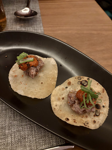 Pedimos cervezas y sake para comenzar al que acompañaron con un pequeño aperitivo de la casa. Para los platos principales pedimos el tiradito de atún tataki, gyozas de cazón playero y de asado negro, ebi pomelo, y uramaki de atún. De postre nos decantamos por el cheesecake. Si se tienen dudas, recomiendo preguntar a uno de los camareros ya que nuestra camarera nos ayudó a pedir para probar diferentes sabores y tener el balance perfecto en la cena. Ningún plato fue mediocre. Cada uno de ellos nos pareció increíble y nos sería difícil elegir uno favorito. Tuvimos la suerte de hablar con el chef César Ramírez al final de la noche. César es meticuloso y perfeccionista y se nota que un gran esfuerzo, experiencia, y horas de trabajo van en cada plato.
