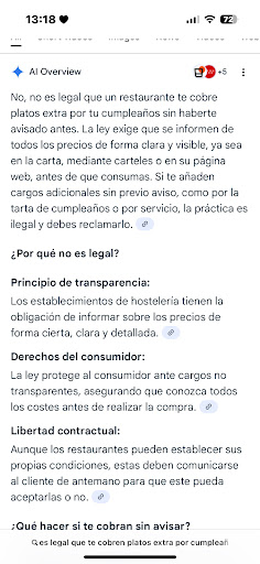 Lo peor llegó al final, al momento de pagar: nos encontramos con dos cargos de “servicio de cumpleaños” de 5 € cada uno. Preguntamos y nos dijeron que correspondía a los platos que nos dieron para repartir la tarta que habíamos llevado, cobrando 5 € por cada 10 personas (éramos 19). Entendemos que quieran cubrir el coste del lavado extra, aunque nos pareció caro. Lo que realmente nos molestó fue que nadie nos avisó previamente de este cargo. Solo lo descubrimos al revisar la cuenta después de pagar. Posteriormente comprobamos que este tipo de cobros adicionales deben estar claramente informados o comunicados antes de aplicarse, lo cual no ocurrió. En el momento en que nos entregaron los platos deberían haber aclarado que tenía un coste adicional.