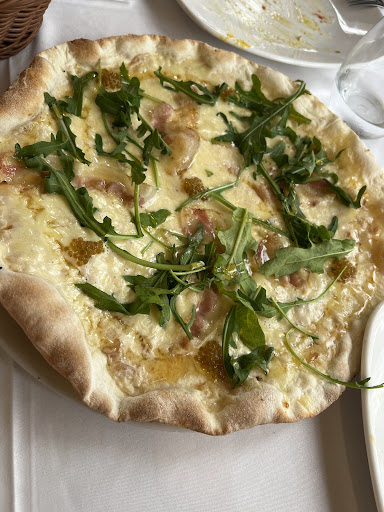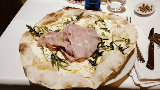 I ordered a 4-cheese pizza and husband took the truffel special one. We were really surprised about the pizza crust. We've had loads of pizzas in authentic pizzerias in Italy and the dough was never this flaky and crumbly. Yes, Italian pizza dough is thin, but it should not fall apart and crack in your hands like a crisp. For this reason there was hardly any quantity of food and flavor justifying the price. Husband's truffle pizza was just a thin crisp slap brushed with some sauce, hardly any toppings. Seemed like an appetizer if anything.