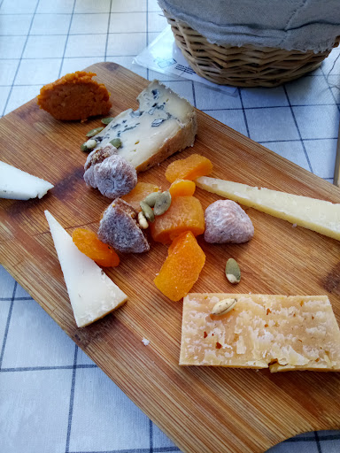 The service was not good, the cheese plate was minimal, the wine was mediocre. The tables are outside and it's set up nicely in a nice area. I don't know if it was because I was alone or maybe because I was speaking English but the waiter with the grey beard, an older guy, with a belly was really dismissive and unkind. And he directed the waiter that was serving me and being helpful and kind, he was a young handsome fella to go away. The young waiter was trying to find the price for a bottle of wine for me and the other guy was like forget it just say €28 so I just bought a cup for €4. The cheese board was literally five pieces of cheese and they weren't even sliced generously. It had pieces of figs, a soft sugar coated fruit and a few pumpkin seeds. The only thing that was delicious was the €5 small glass of cuban mojito sorbet. That drink was tasty but small. I would not go back to this...