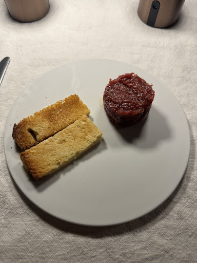 Wine - lovely list of local wines at reasonable prices - we had a glass of their own wine (dry, simple, solid) and a bottle from a nearby vineyard for a bit more money and it was also quite good. We ordered the full tasting menu for around $200 each - we got this for 2 - plus ordered a 'working animal' which was very rare and aged for close to 200 days (the normal tasting menu has a beef that is 115 days old) and is able to withstand this due to the unique musculature of the animal (no cows 'work' these days it seems) and it was a lot of food and a lot of meat, but we got through most of it. the 200 day meat was a 10/10 - best steak any of us have ever had - tender, marbled, grilled to medium rare perfection. the 115 day meat my son liked less and my wife liked more as it was cooked just past raw but also was truly superb. the various cured meat dishes, tartare, amazing artichoke (about the only veggie you'll see), fantastic desserts, bread service, and more were all outstanding, kept at a good pace to be out of there in under 3 hours for 10 courses. The very best was the 24 hour roasted beef slice which was like the best slice for a sandwich ever made - cooked at 130 degrees for a day. service - 10/10 visit to their farm prior to eating that day on a 1 hour tour was a highlight - petting and feeding the cows, seeing the variety they have, checking out their cellars (buy some chorizo and other cured meats - yum) and getting a feel for the community was well worth the few bucks and I think you can't fully appreciate what happens here without doing it. the town is very odd - there are no humans in it we could find - no lights at night - we had a great dinner nearby with about 2 other tables. the town of Beneza 10 minutes away has more but also is pretty empty all day and night it seems for having 10,000 people. it felt like Vanilla Sky in Jimenez de Jamus but great for a 1-2 day stop. we visited Museo Alfar to do pottery and took a 15 minute ride to picnic at the river fed pool they can guide you to.